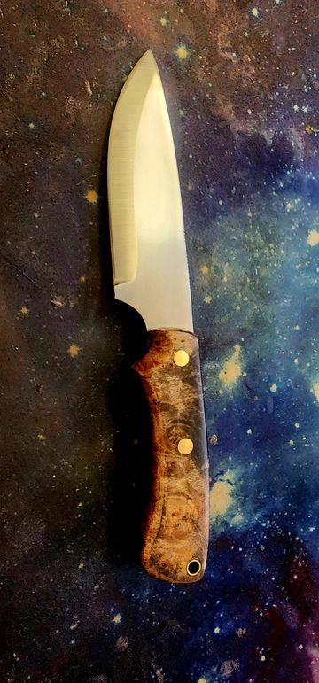 Hunter/Skinner with burl wood handle and lanyard hole.